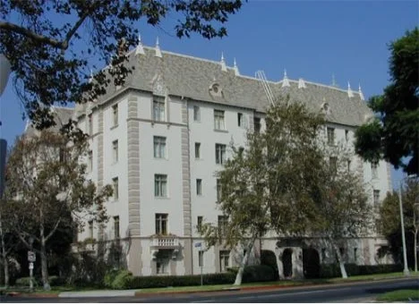 In the 1950s my grandmother Schatzie moved to an apartment around the corner from ours on Wilshire. It was recently torn down and is an extension of a Temple. This view shows both her replacement on the right and the brown high rise that was built on the site of our residence.